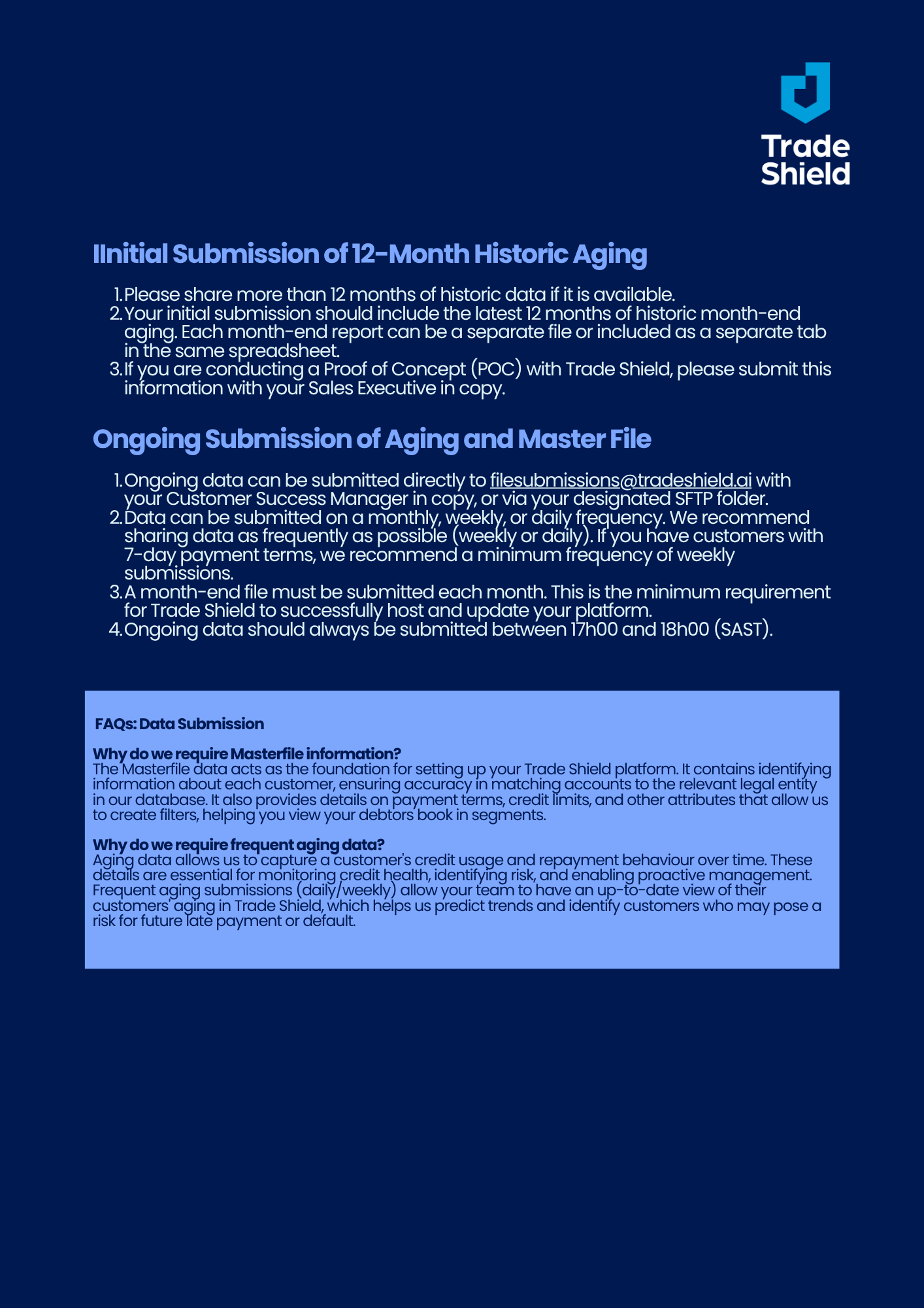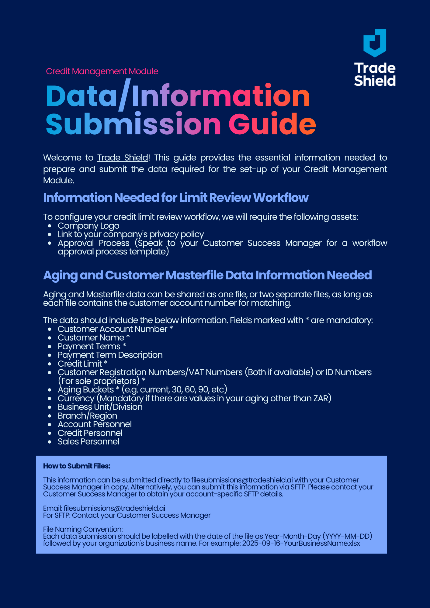 Welcome to Trade Shield! This guide provides the essential information needed to prepare and submit the data required for the set-up of your Credit Management Module.