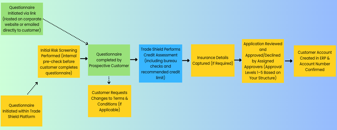 After the customer submits their application, it is sent to Trade Shield for further assessment.