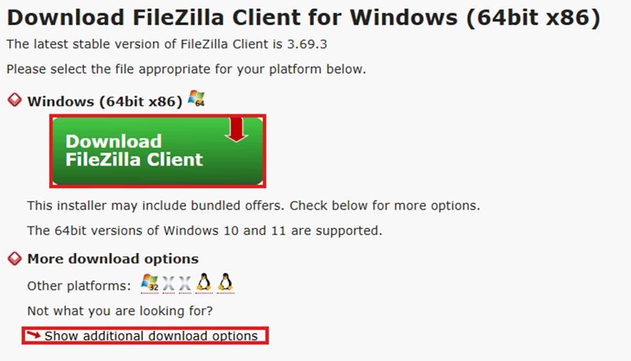 Visit FileZilla and download the file transfer software (https://filezilla-project.org/download.php?type=client).
