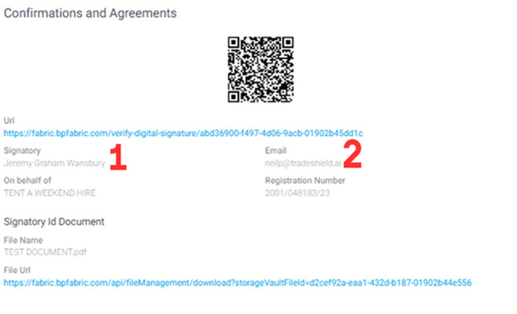 1. Selected Signatory – who was chosen in the dropdown (pulled from CIPC)