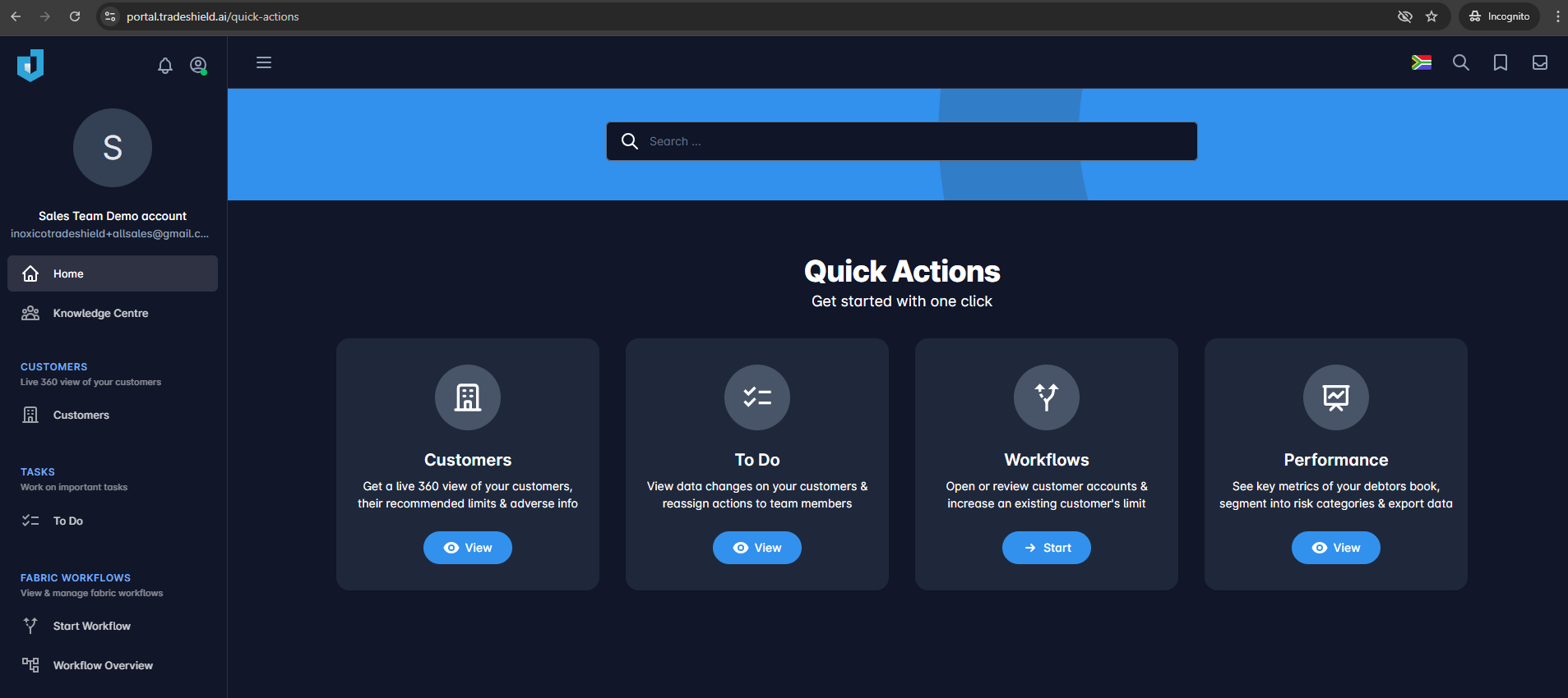 Log in to the Trade Shield platform using your assigned credentials.