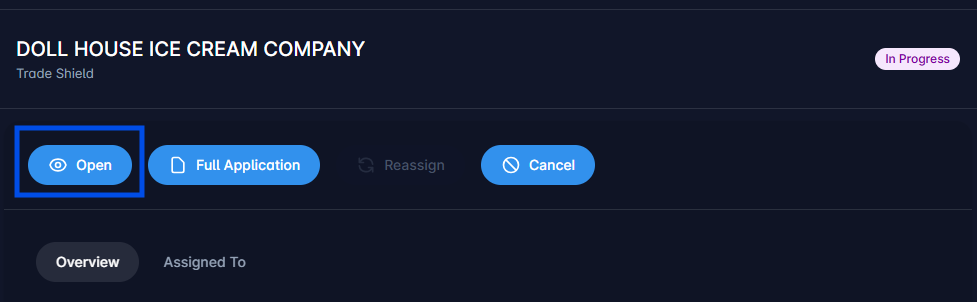 Select the correct application and click Open to view the application details.