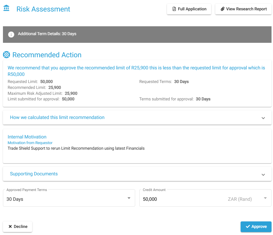 This guide explains how to approve an application that has reached the Final Approval stage in the Trade Shield platform. It is intended for assigned approvers and admin users who are responsible for reviewing and completing final application decisions.